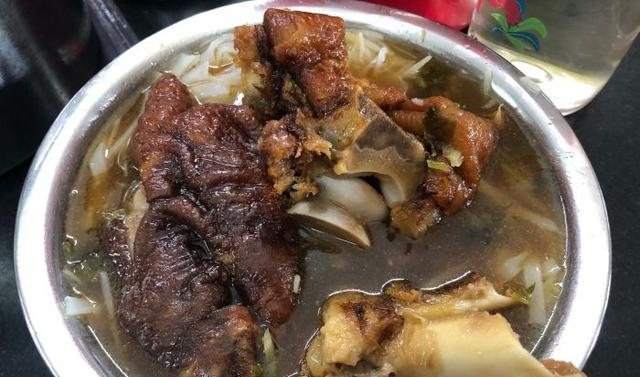 首先从外观上面来看,这个猪脚粉的分量真的是很良心了,满满一大碗全是米粉,最上面则是看起来味道浓郁的猪脚。米粉吃起来很有弹性,十分的爽口,猪脚的表皮则比较酥脆,在被汤汁浸泡一会儿之后,又充分吸收了各种调味料的味道,因此吃起来也是让人十分过瘾。而且价格也很实惠,10元有1个大猪脚,13元是两个大猪脚。